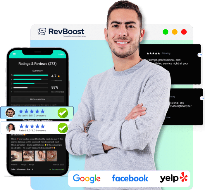 RevBoost helps you gather top reviews, making your business stand out on Google, Facebook, Yelp, and more.